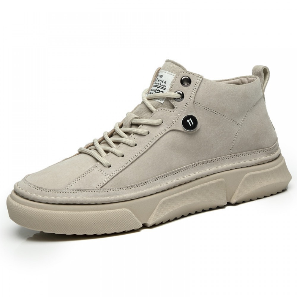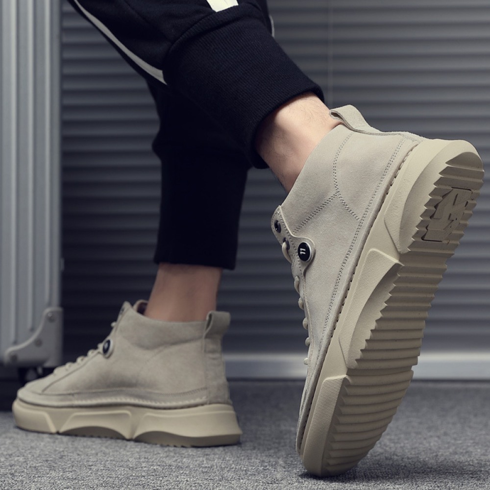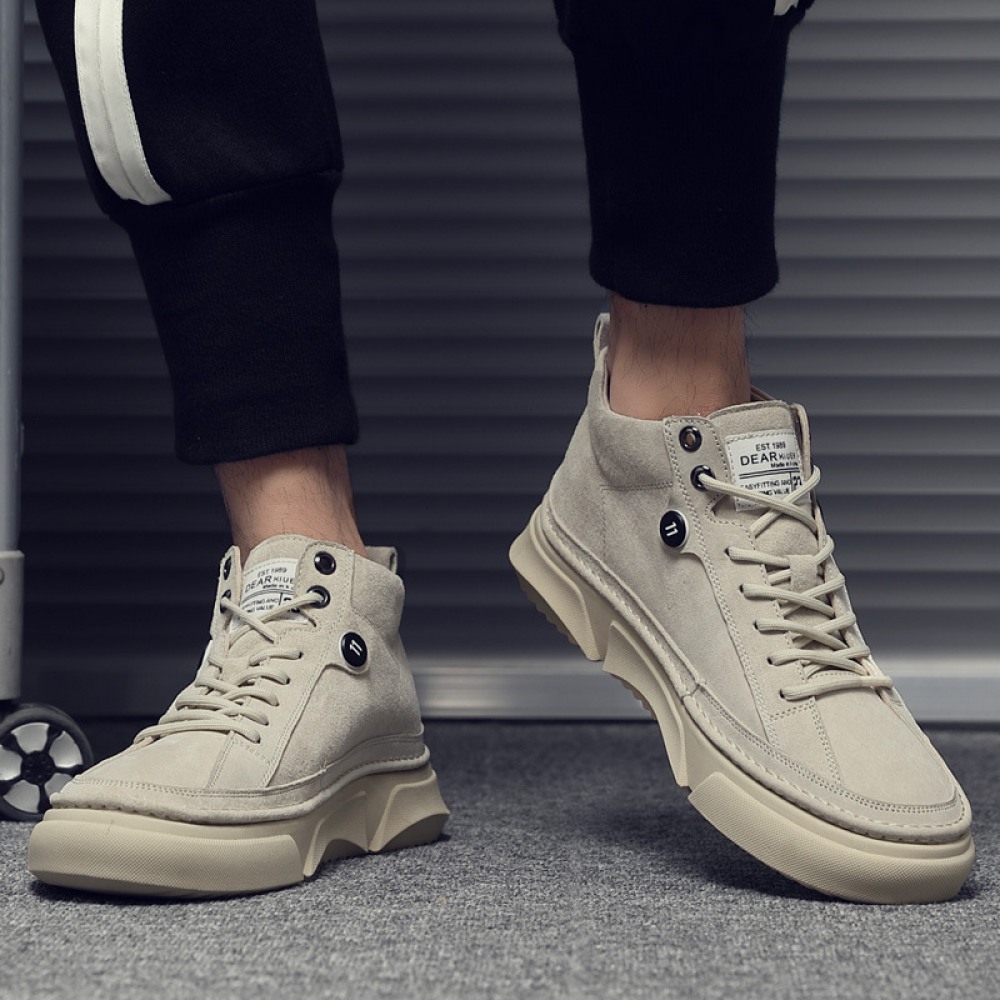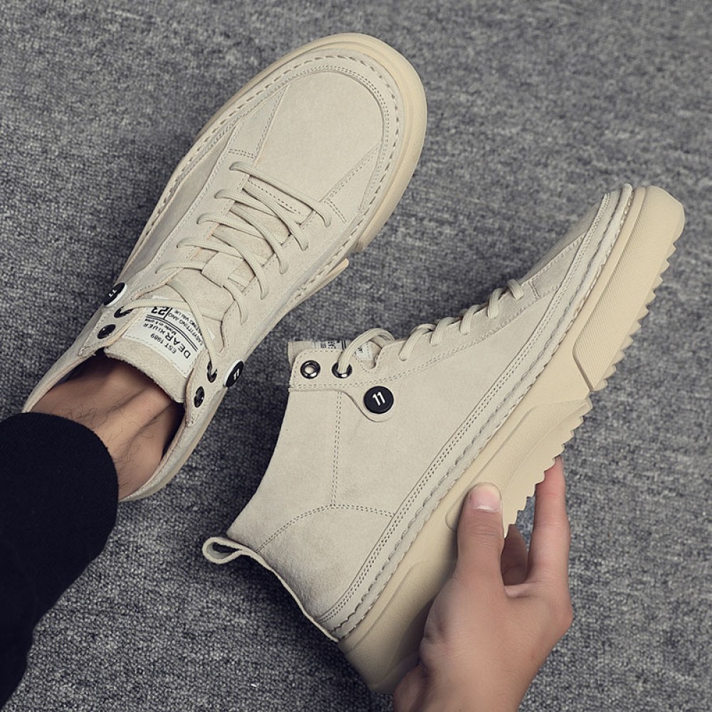 Autumn Men's New High-Top Leather Sneakers Casual Martin Boots Trendy White