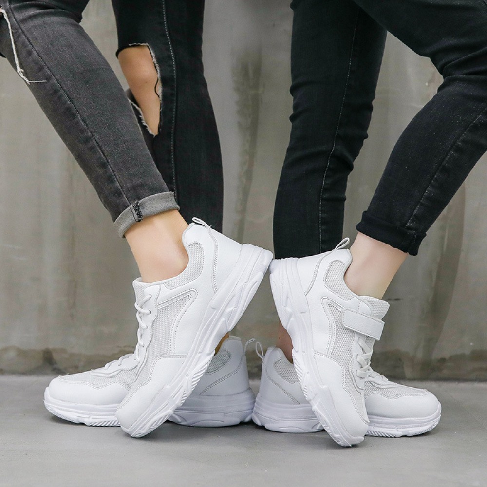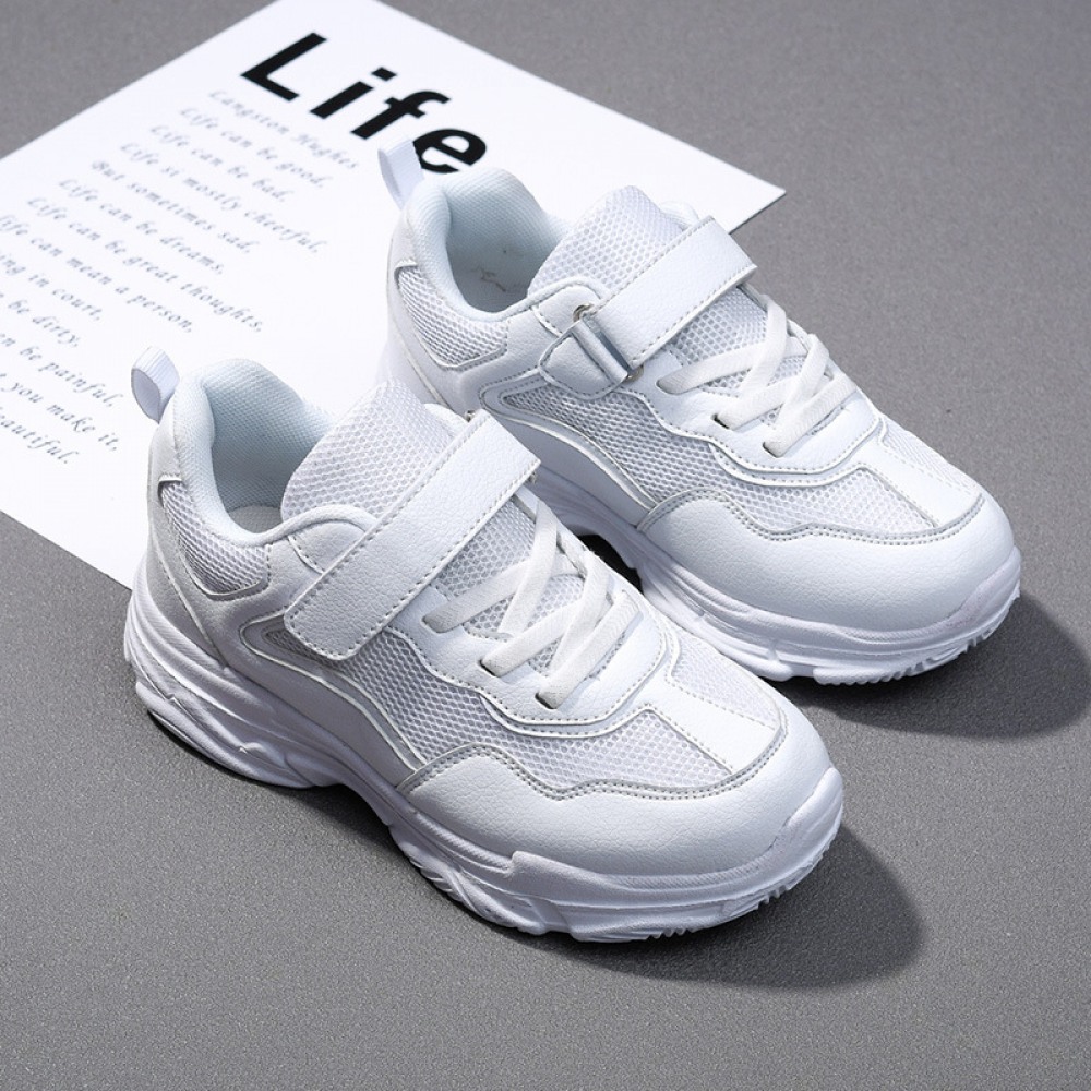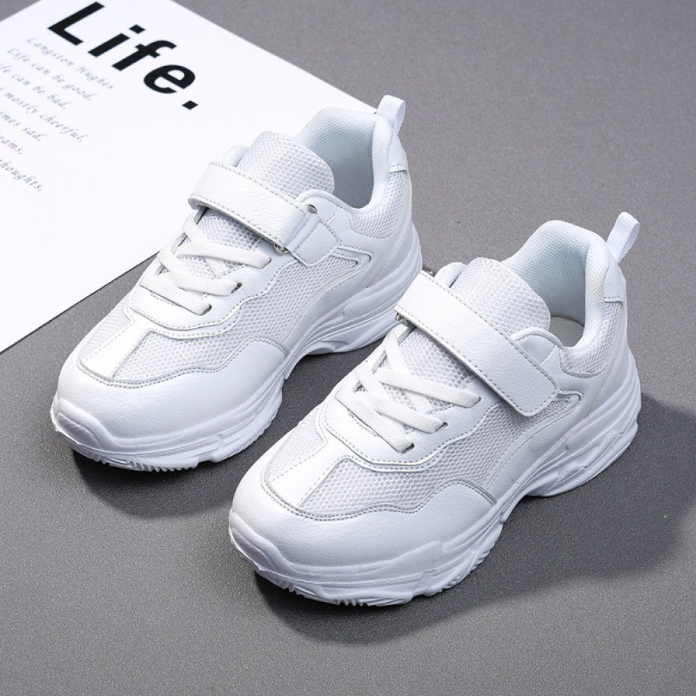Children's White Spring New Breathable Mesh Mid-Large Casual Sports Shoes