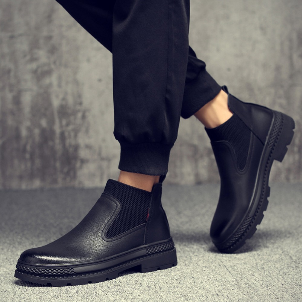 Men's Leather Short Boots Desert Rhubarb Boots New High-Top Martin Boots
