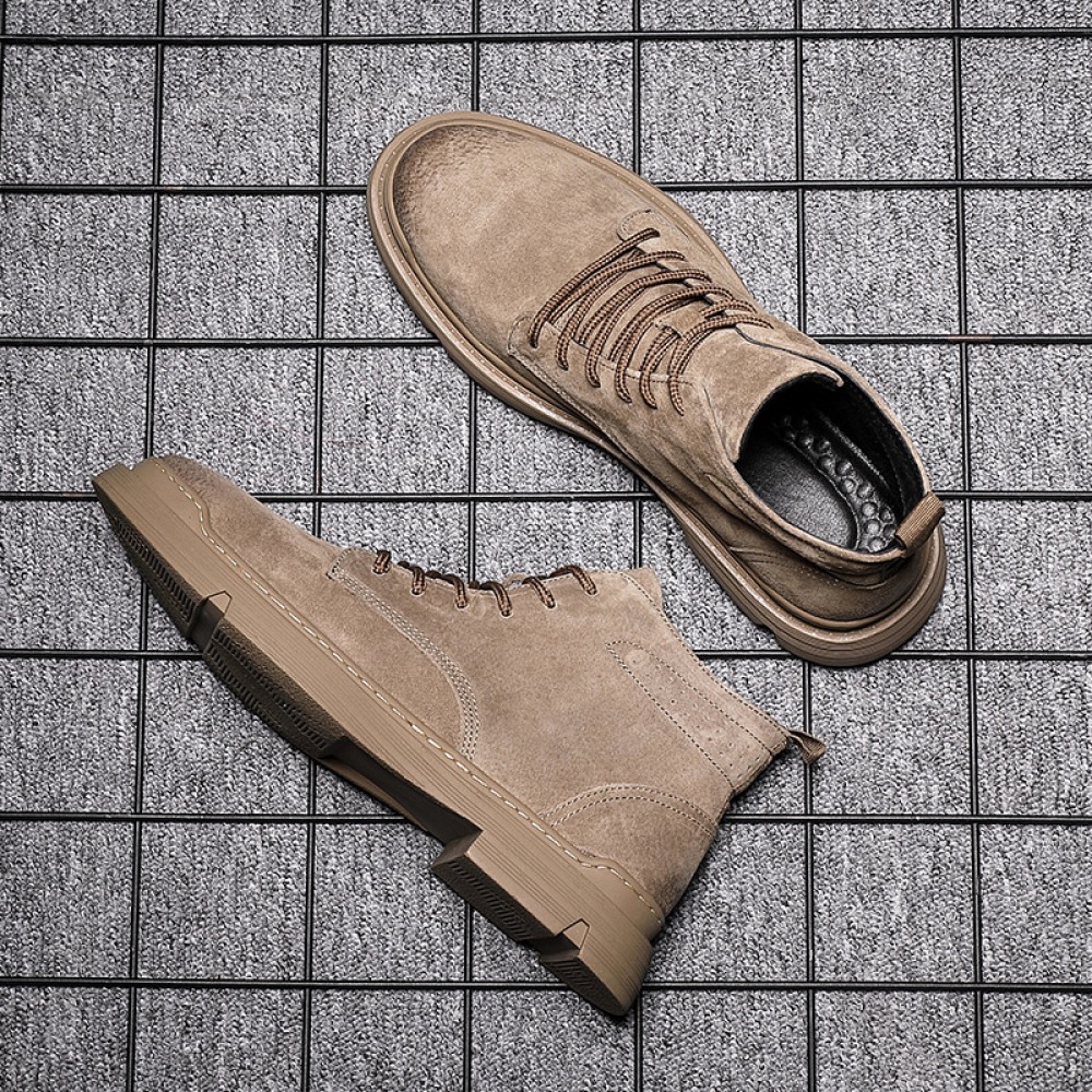 Men's Leather Short Boots Desert Rhubarb Boots New High-Top Martin Boots
