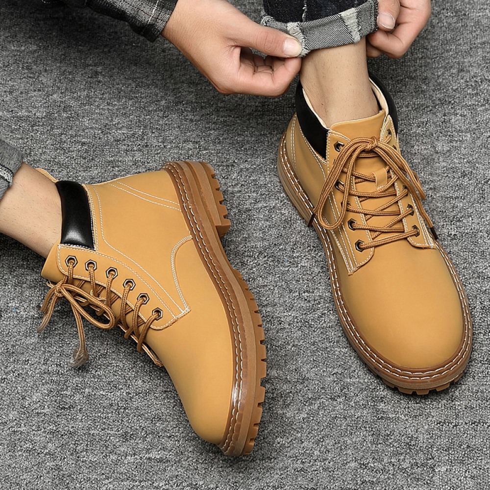 Men's Leather Short Boots Desert Rhubarb Boots New High-Top Martin Boots