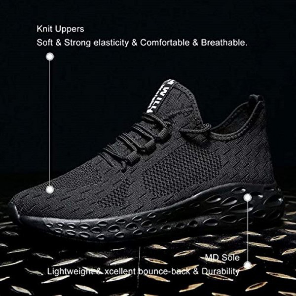 Men's Fashion Sneakers Slip On Tennis Work Shoes Athletic Sports Running Casual Walking Gym Workout Shoes Black