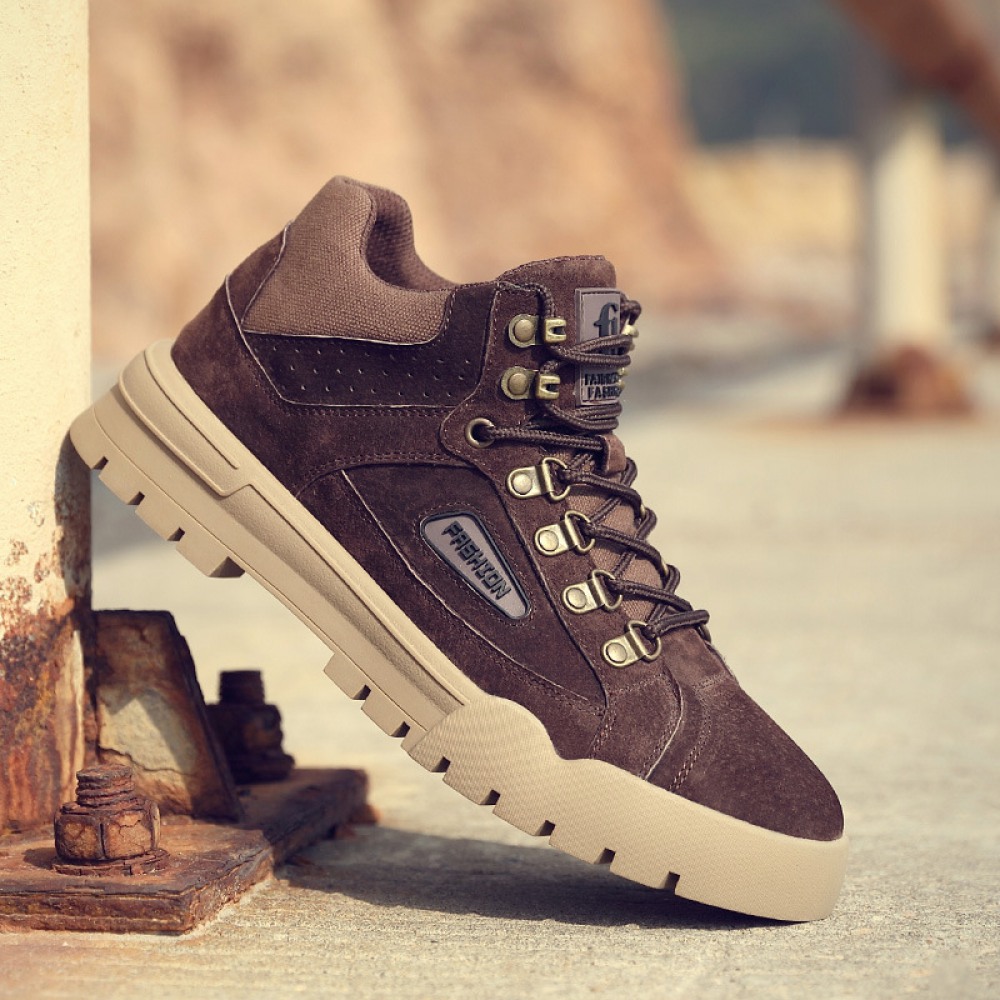 Autumn Men's New High-Top Leather Sneakers Casual Martin Boots Trendy White