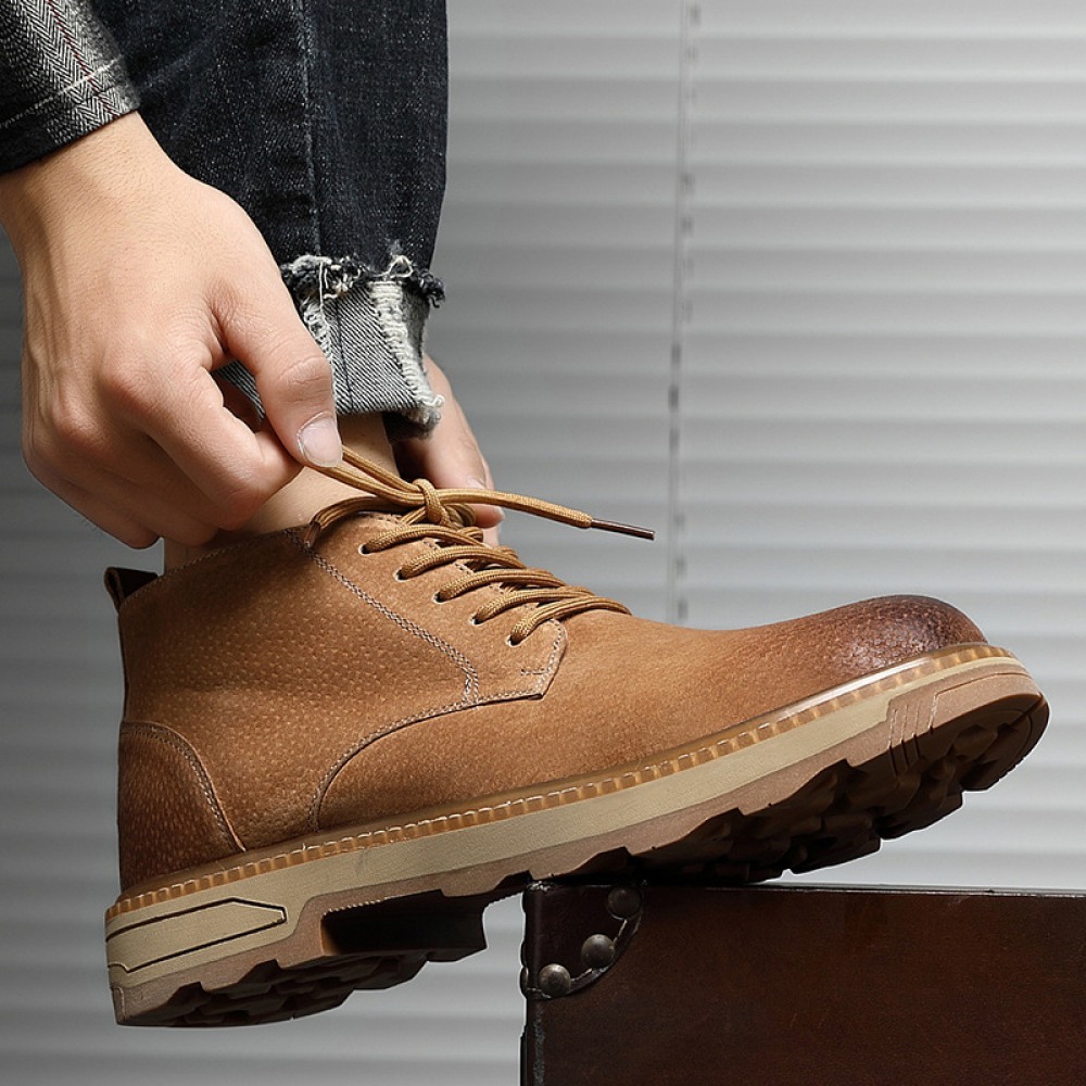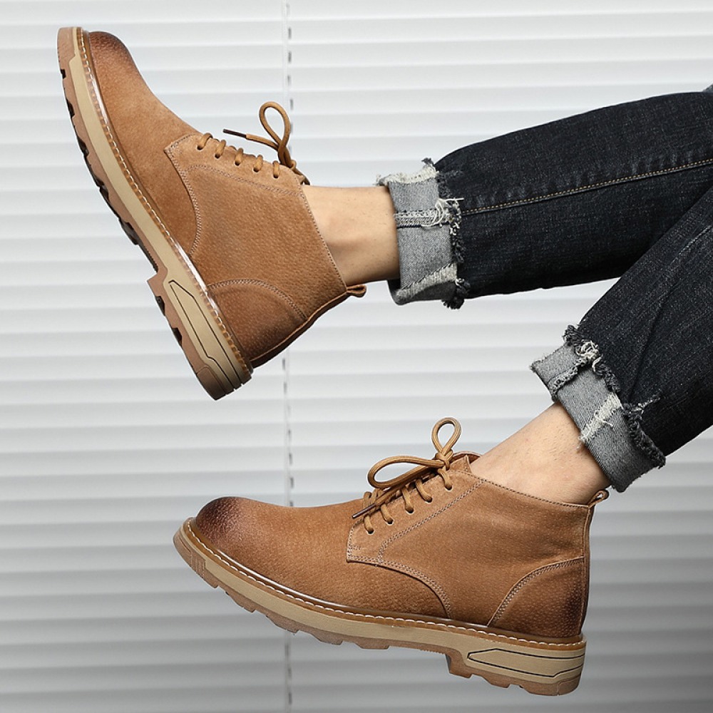 Men's Leather Short Boots Desert Rhubarb Boots New High-Top Martin Boots