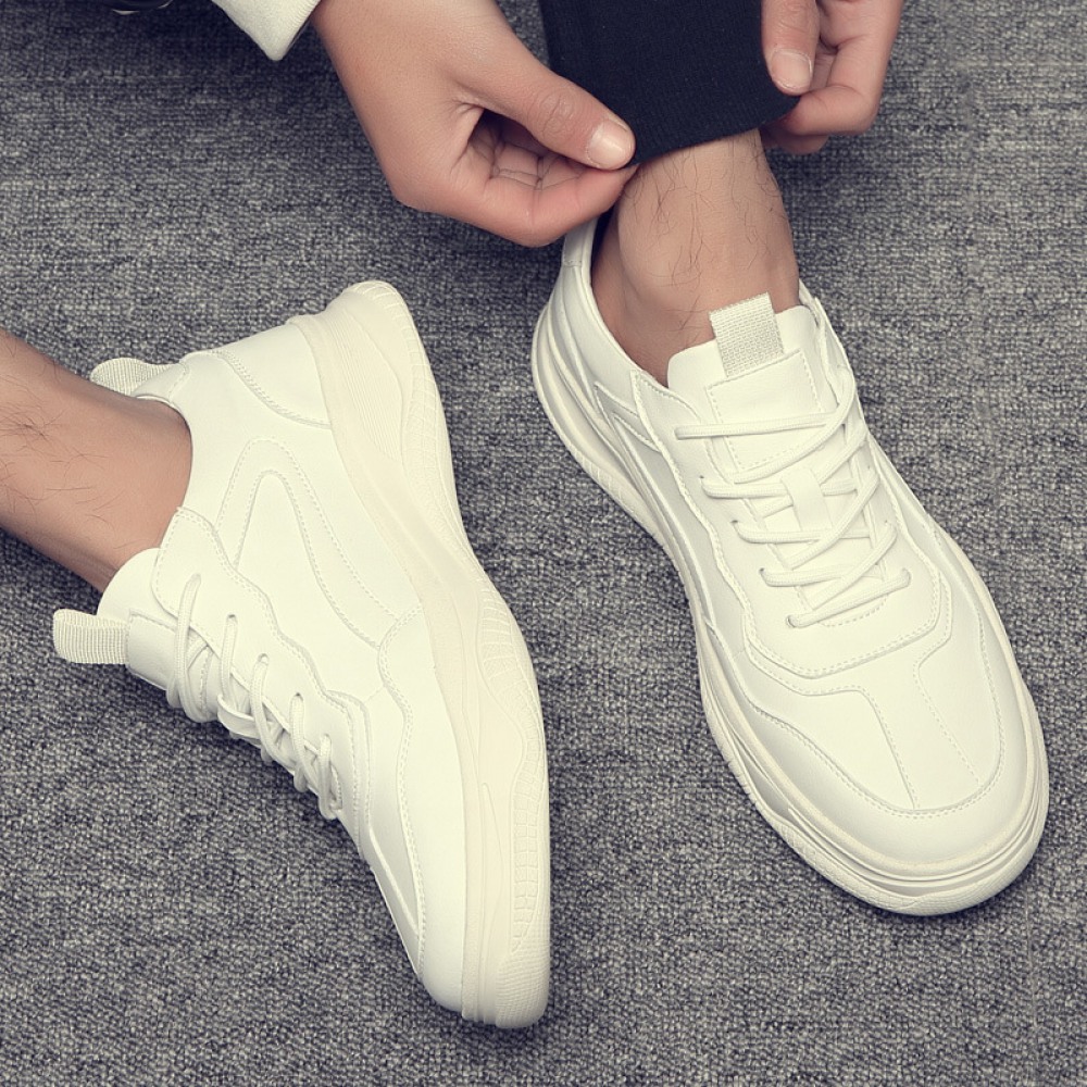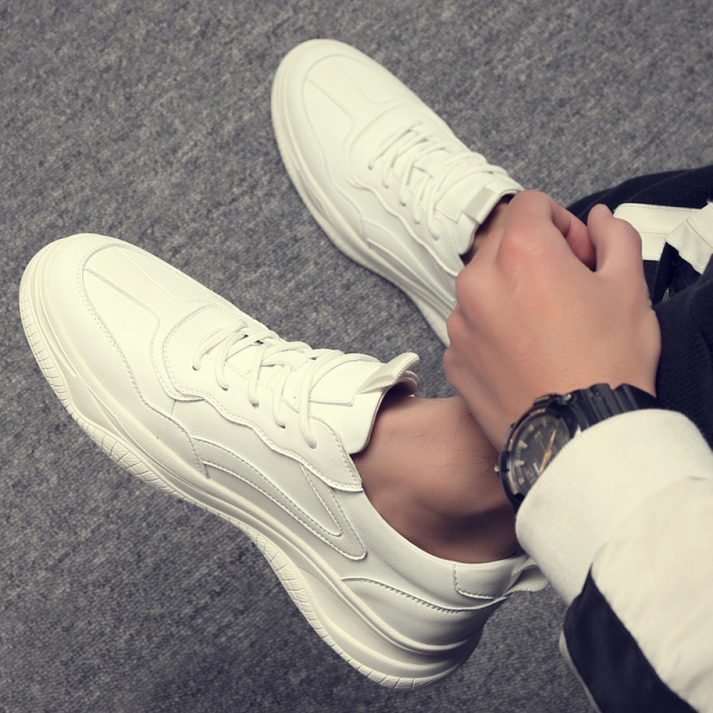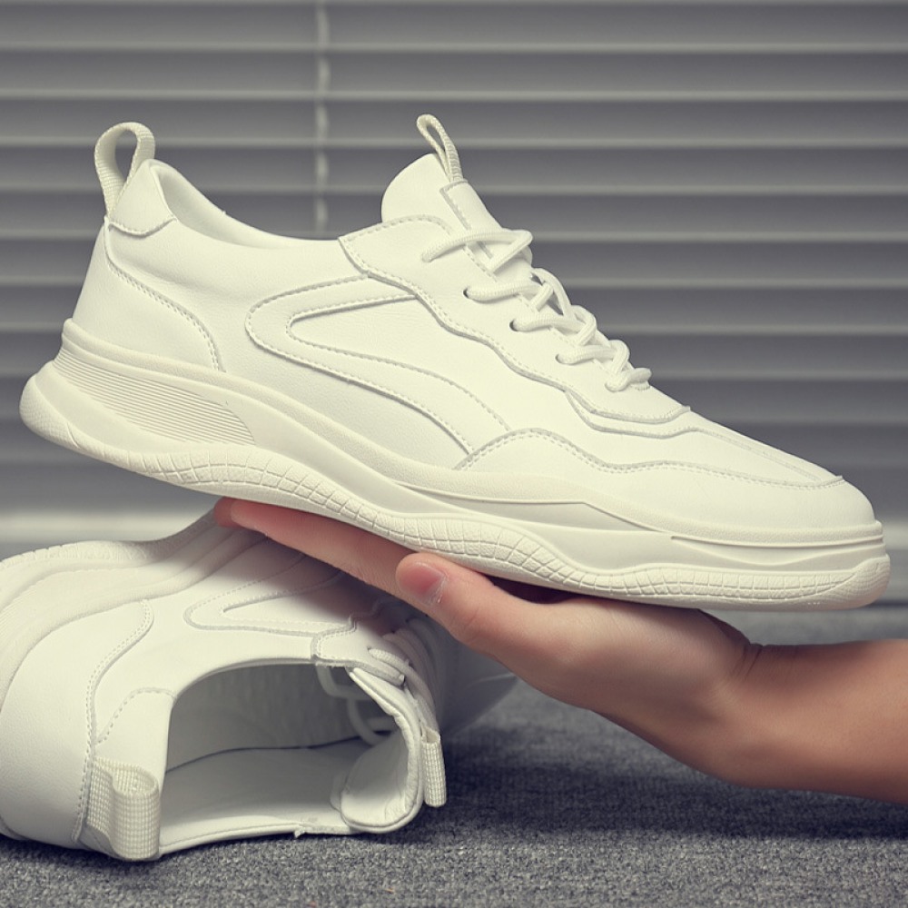 Spring New Men's Casual Sports Shoes TrendLow Top White Leather Shoes